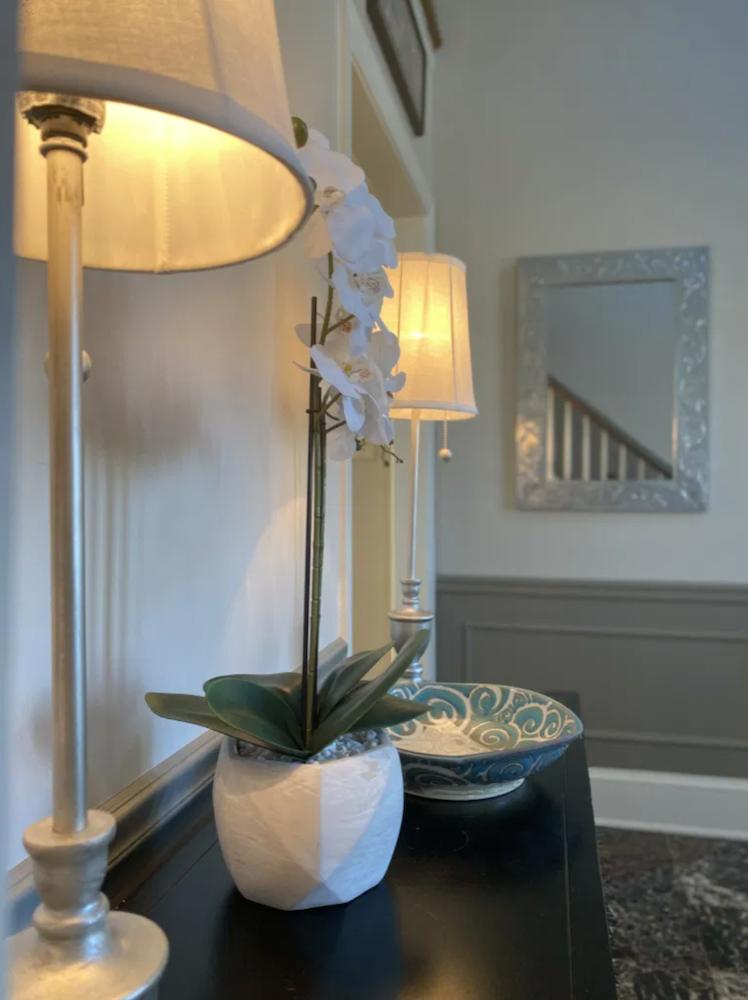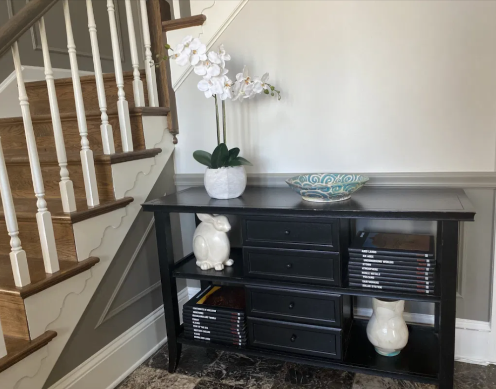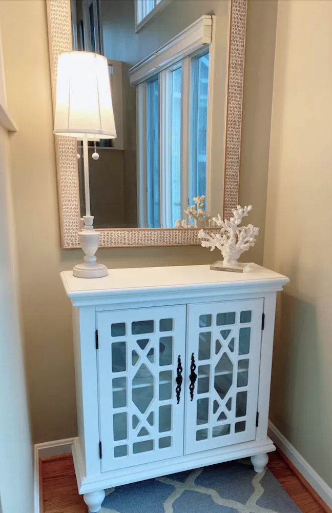 In our entryway foyer, I’m now using this smaller console table instead of the heavy armoire that used to be here.