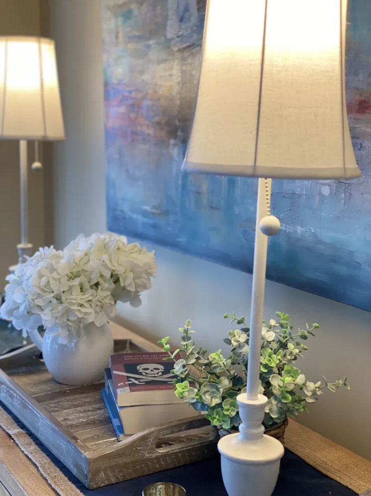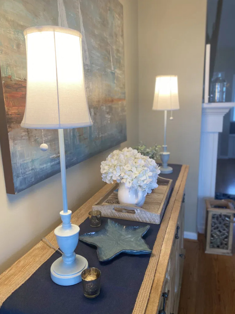 Doug’s mom ALWAYS had buffet lamps on this console table, and so of course, in memory of her, I thought it would be nice to use them here too.