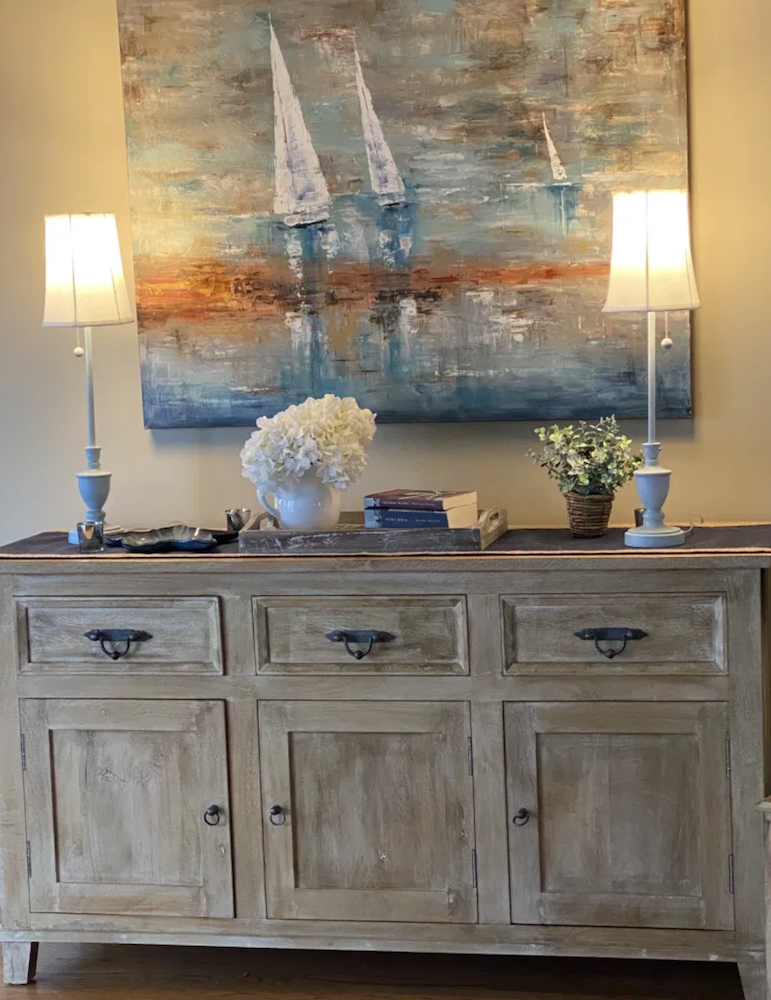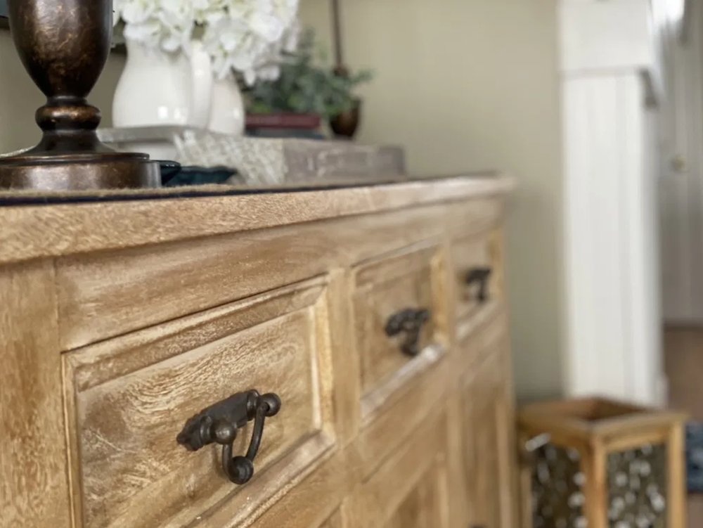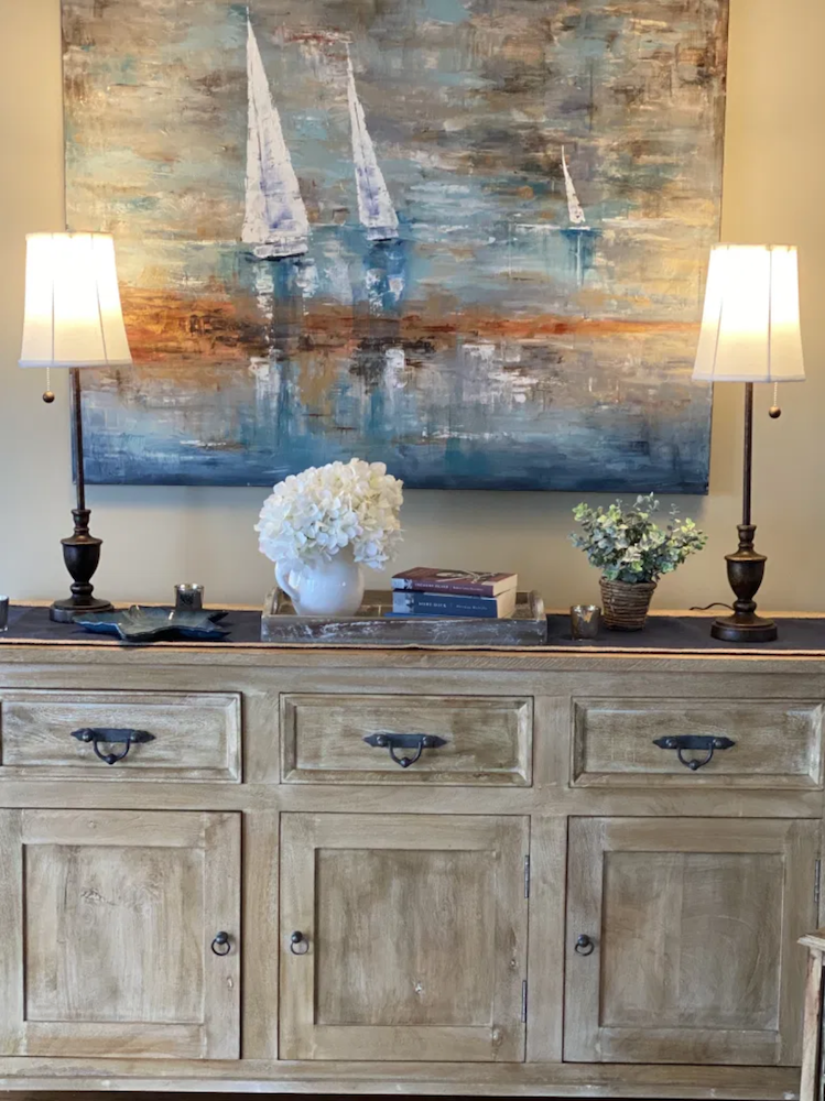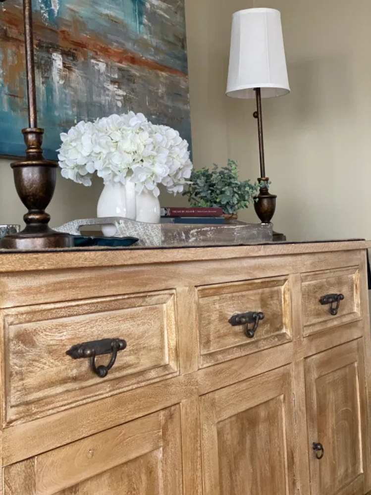 However, since there is bronze hardware on the console, it became a great place to use the bronze buffet lamps.