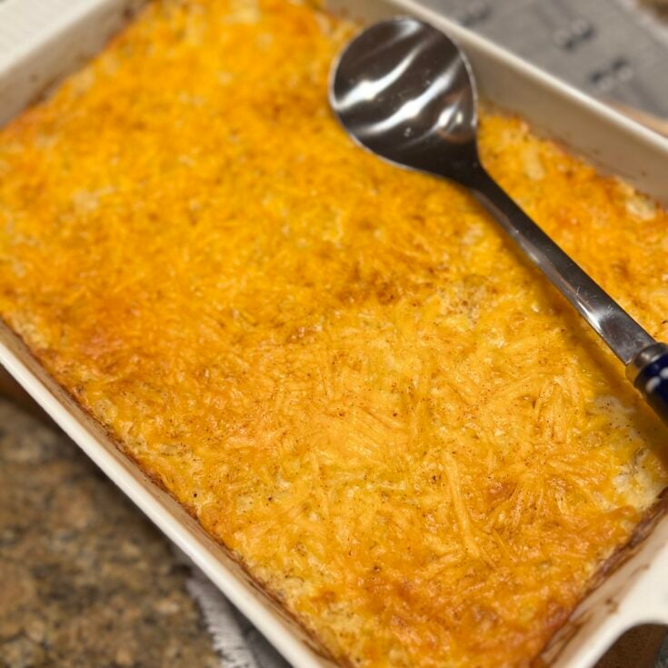 Check out this recipe for easy cheesy hashbrown potato casserole below… and keep reading to learn a few more ideas I have around this tasty recipe.