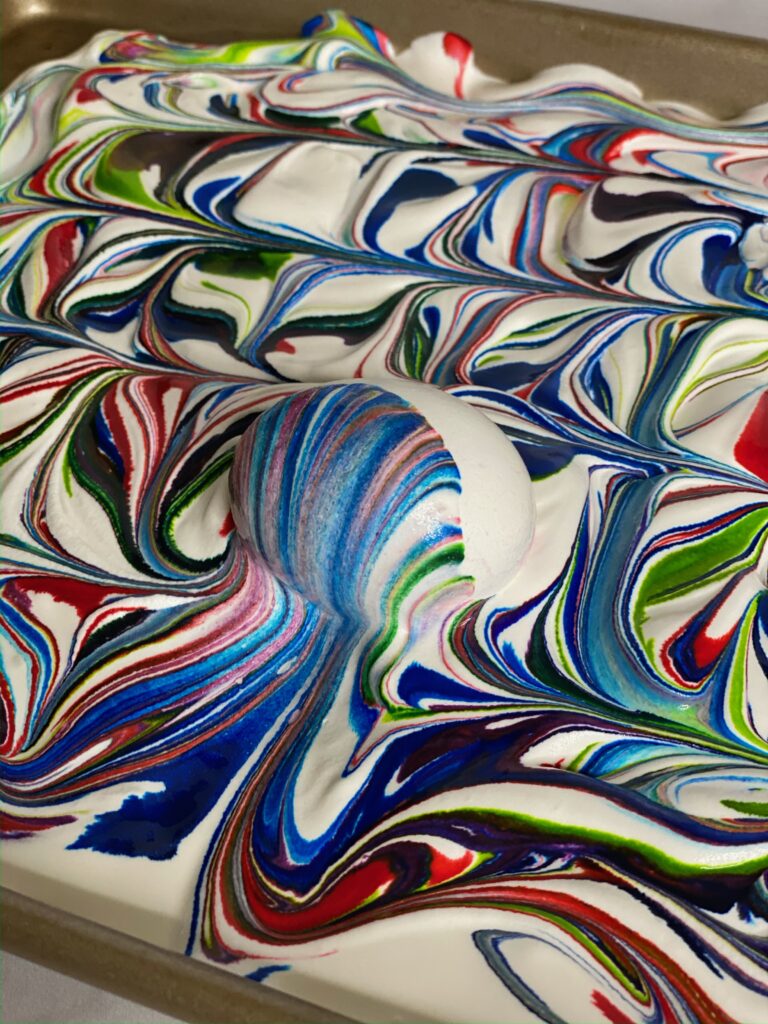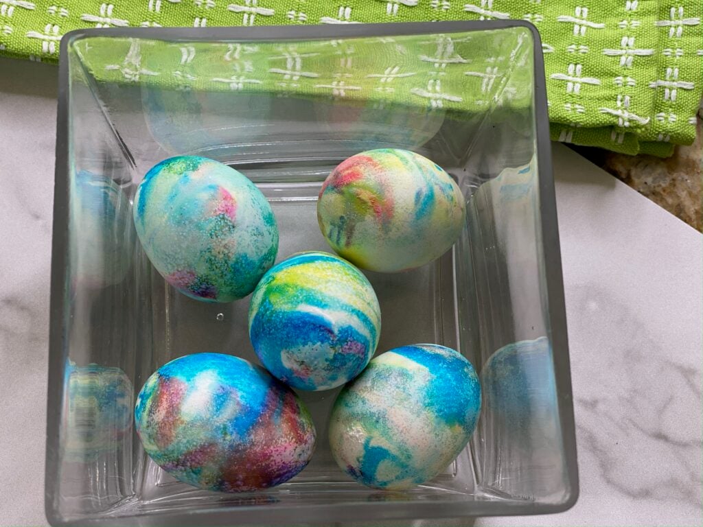 Lightly rinse off the whipped topping and your tie-dye Easter egg will be revealed!