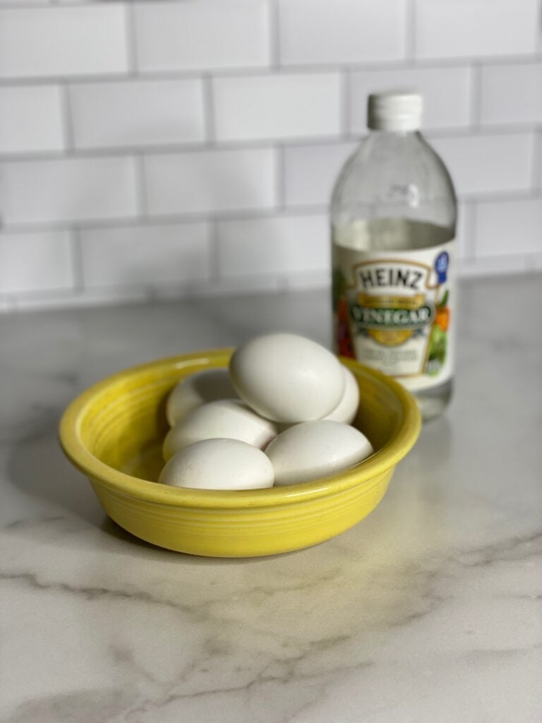 Similar to the whipped cream tie-dye eggs, you’ll start off with hard-boiled eggs.