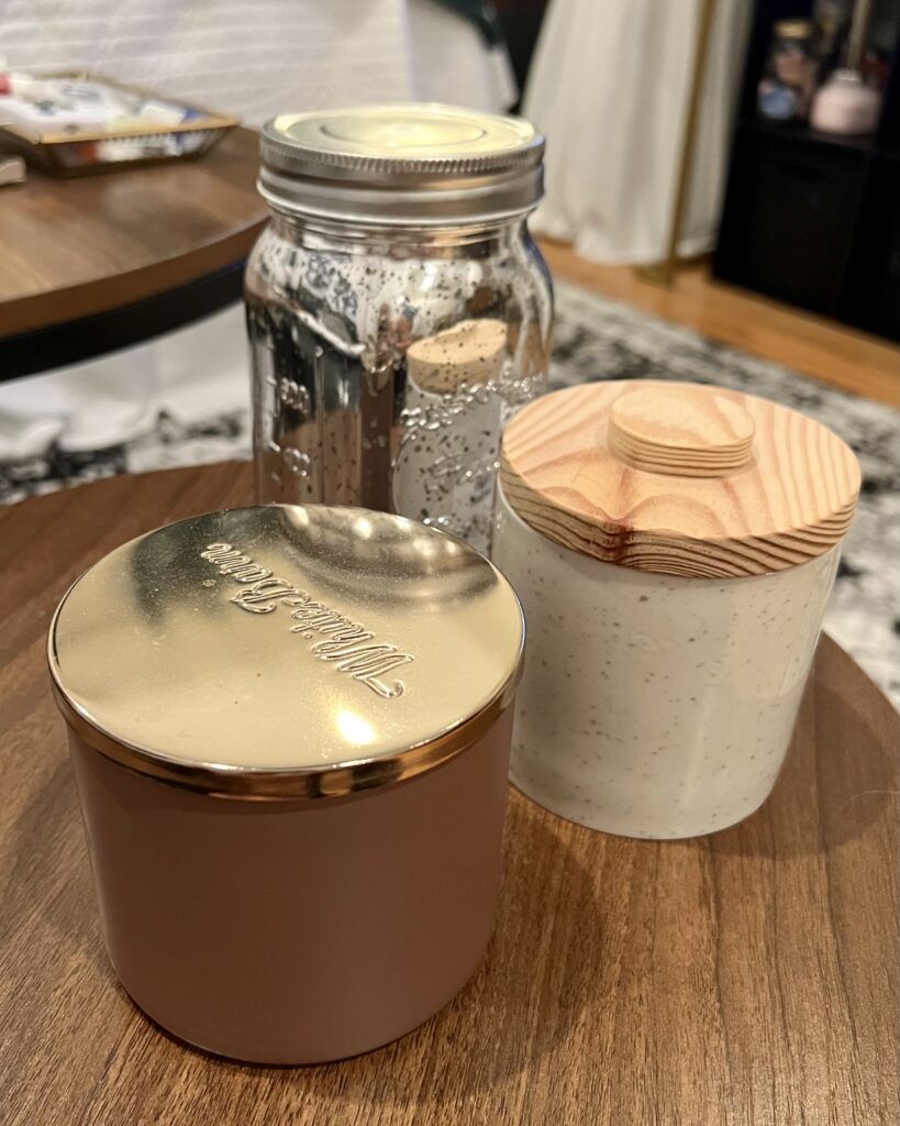 Many candles come with lids that can be used to distinguish the candle. (Like the Just Jill candles above!)