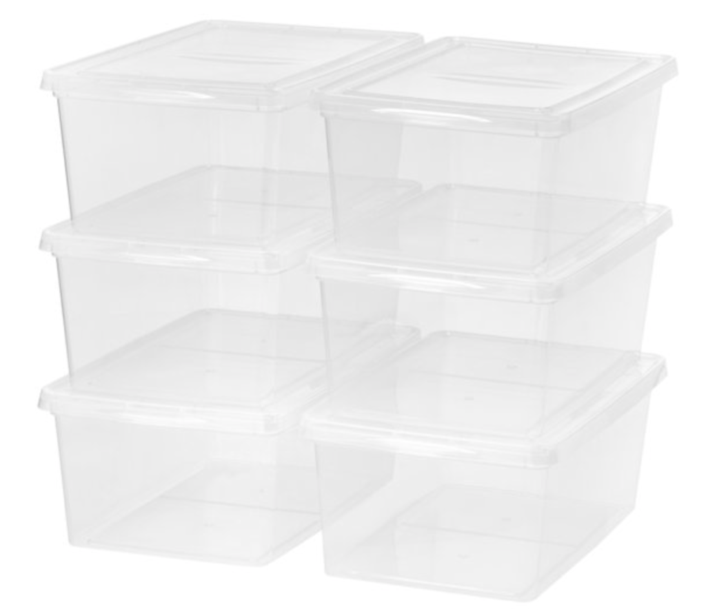 I like this set that includes six 17-quart boxes. Great for categorizing toys! You can also opt for bins with handles if you plan on moving them around a lot.