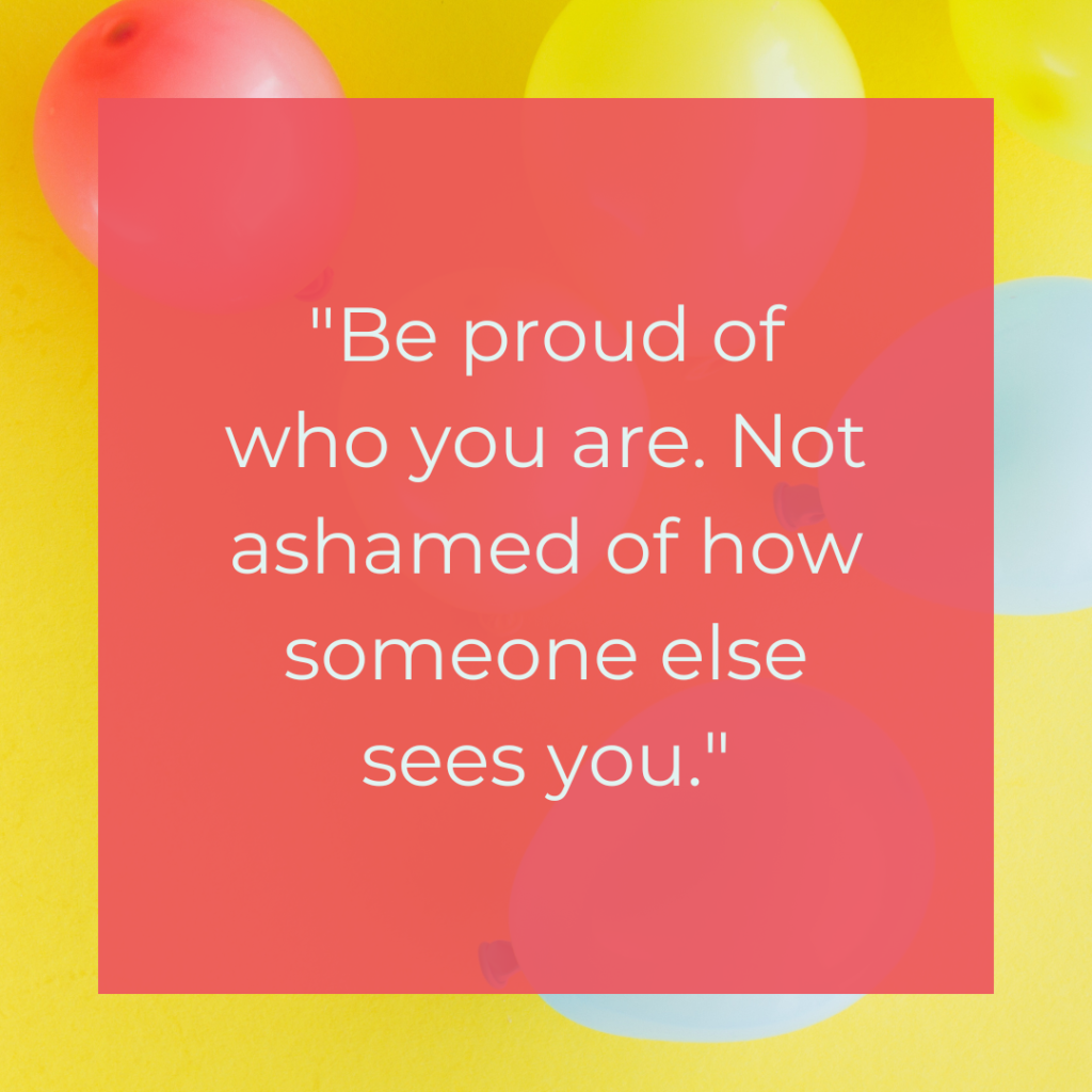 “Be proud of who you are. Not ashamed of how someone else sees you.”