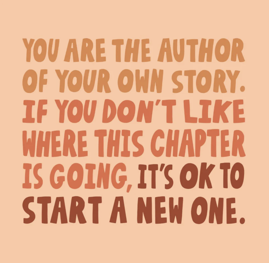 “You are the author of your own story. If you don’t like where this chapter is going, it’s okay to start a new one.”