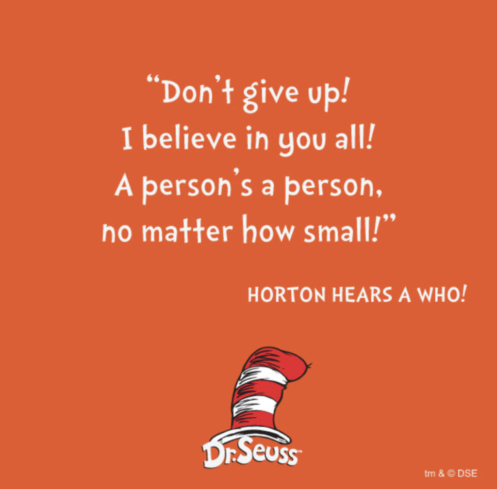 “Don’t give up! I believe in you all! A person’s a person, no matter how small!”