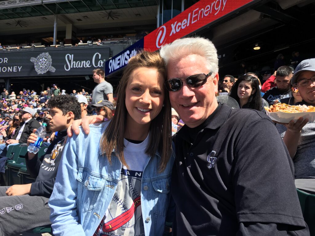 Here’s a photo of my dad and me at a Rockies baseball game. It was a beautiful day but that’s not unique… Colorado has over 300 days of sunshine a year which is more than Florida!