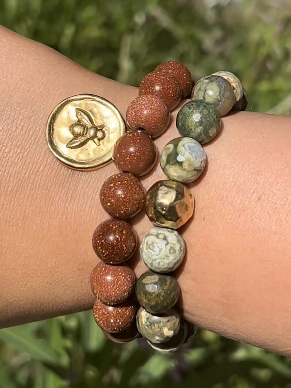 I paired it with an amber goldstone PowerBeads bracelet that quite literally sparkles in the sun.